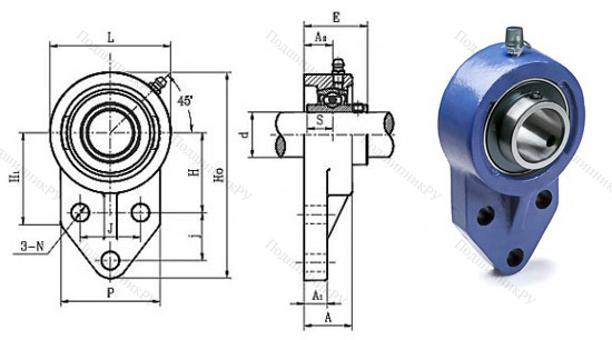 Подшипниковый узел UCFB210 представляет одну из разновидностей подшипниковых узлов в сборе. Состоит из корпуса с кронштейном, имеющим форму равнобедренного треугольника, в котором имеется три отверстия под установочные болты, и встраиваемого подшипника различных типов в варианте исполнения Y.